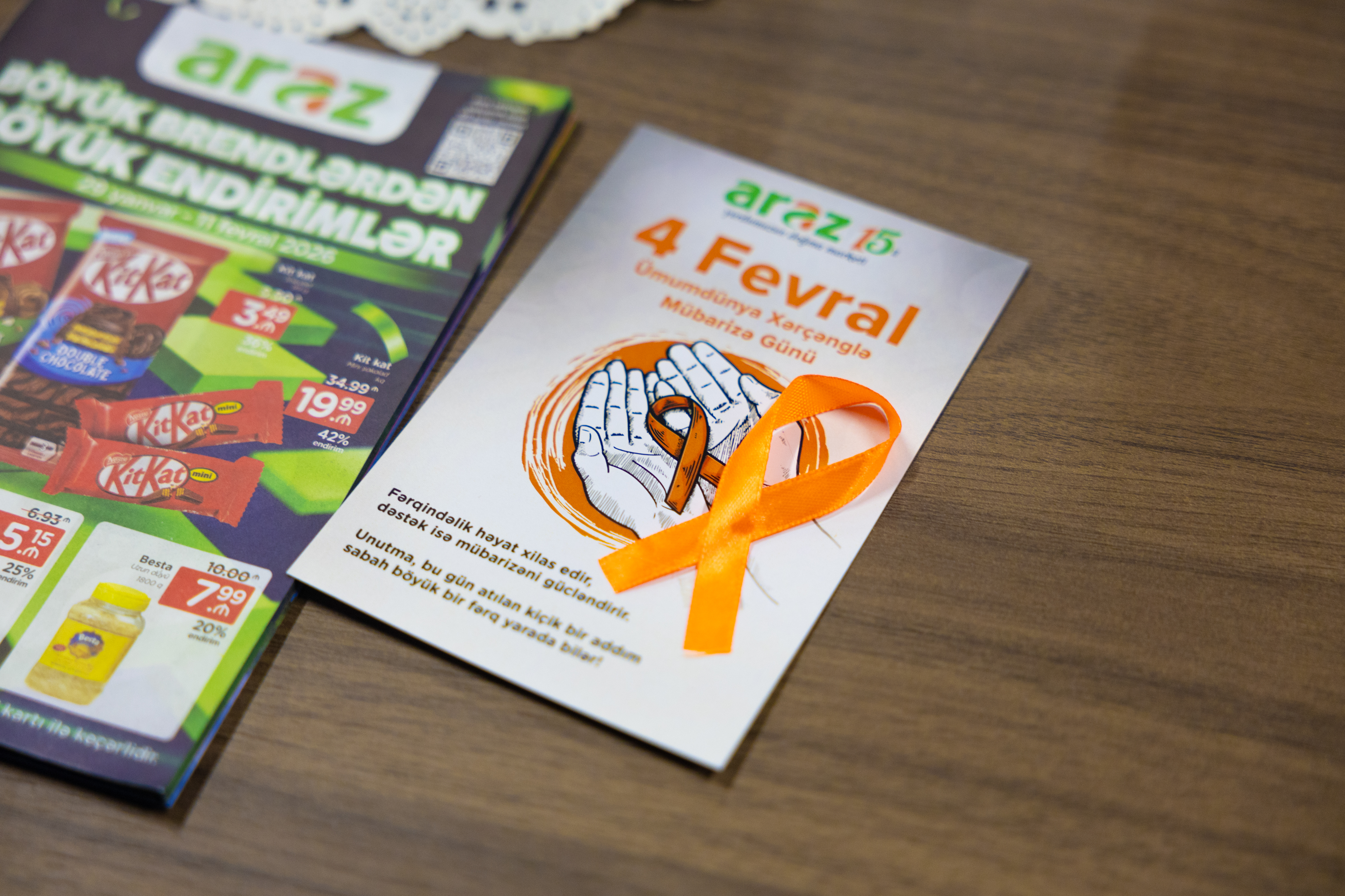 4 Fevral – Ümumdünya Xərçənglə Mübarizə Günü münasibətilə Veysəloğlu Şirkətlər Qrupuna daxil olan “Araz” supermarketlər şəbəkəsi tərəfindən “Araz Fərqindəlik Yaradır” şüarı altında “Xərçənglə Mübarizə Həftəsi” keçirilib.