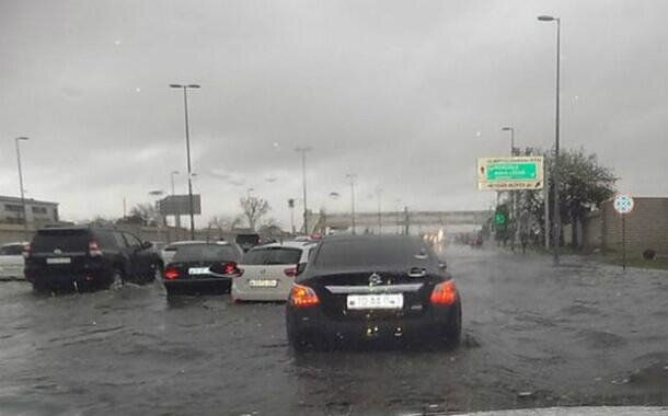 Bakının mərkəzində boru partladı - Yolu su basdı