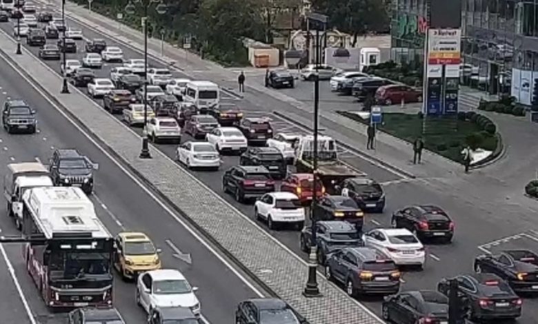 Bakının bir sıra yollarında tıxac yaranıb.