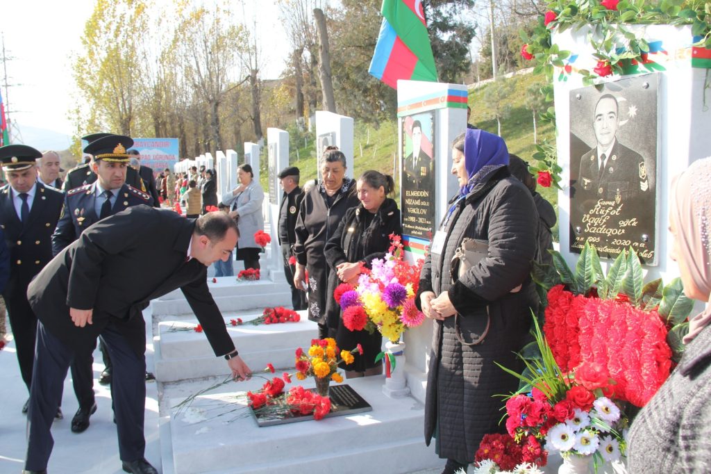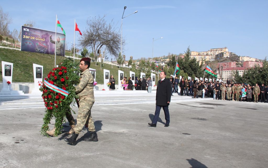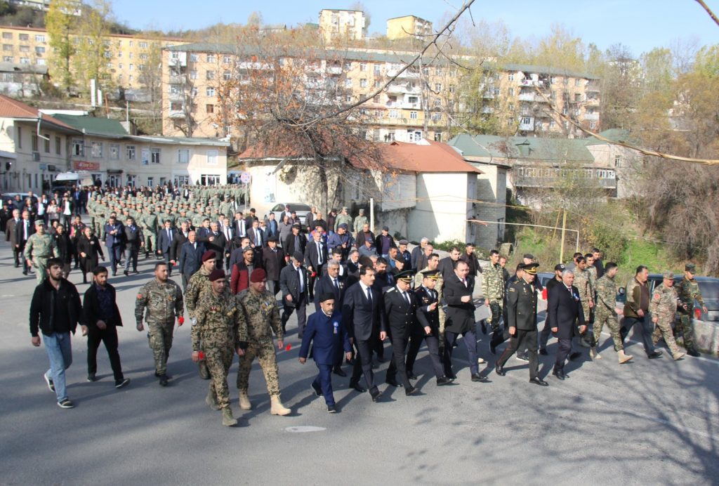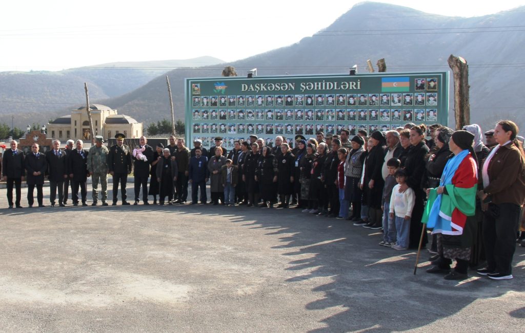 Sonra hərbçilərin də iştirakı ilə Daşkəsən Şəhidlər Xiyabanına yürüş təşkil edilib. Şəhid məzarları ziyarət olunaraq gül dəstələri düzülüb, dualar oxunub, Şəhidlər Xiyabanındakı əbədi məşəlin önünə əklil qoyulub.